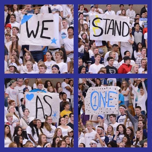 Students in 2016 demonstrating a community value that “Skyview Stands as One”